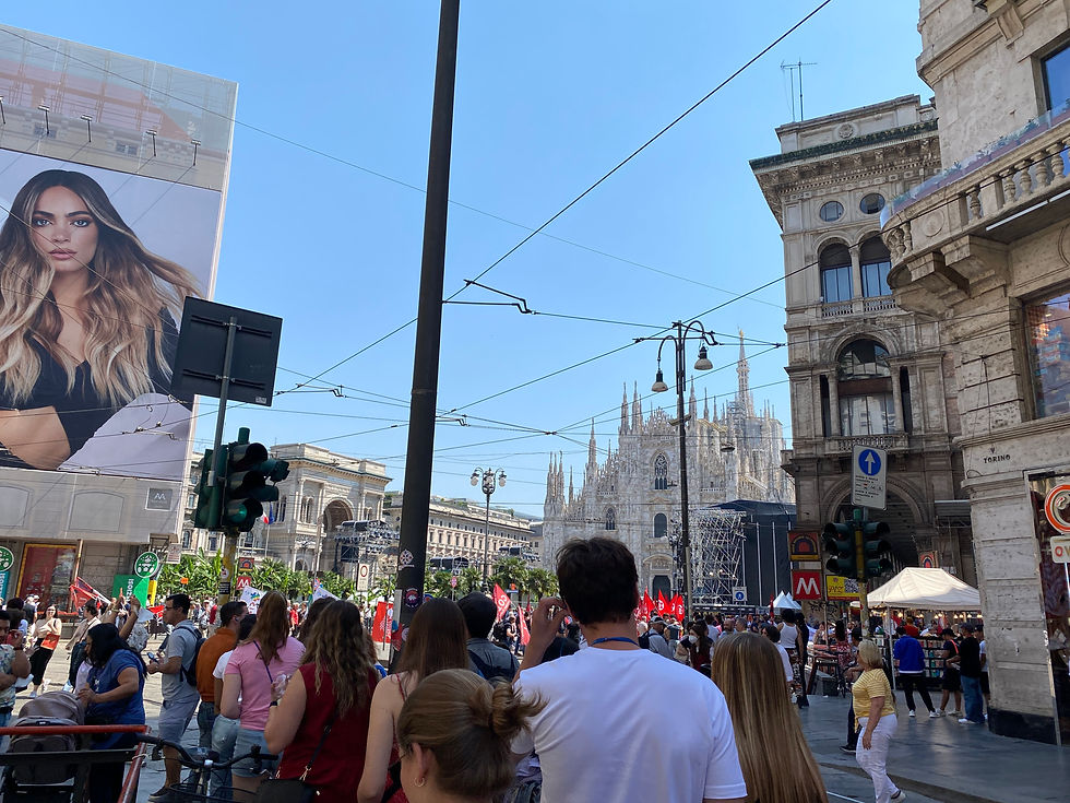 I wanted to get a photo of the juxtaposition of the duomo in the background surrounded by all the billboards, wires, and crowds typical of our postmodern world.